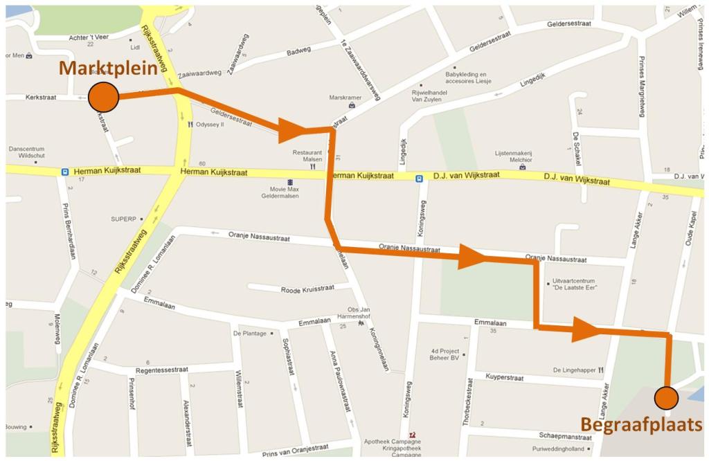 Praktisch: we lopen een stille tocht, deelnemers krijgen ter plekke een roos om neer te leggen bij de begraafplaats, na het Wilhelmus. We lopen de tocht kalm, begeleid door de drums van Harmonie De Volharding uit Deil en de scouts van scouting Graaf van Gelre. De muziek op de begraafplaats wordt verzorgd door muziekvereniging Prinses Marijke. Wie mee wil lopen in de stille tocht dient 18:30 stipt aanwezig te zijnop het Marktplein. De ceremonie op de begraafplaats start om 19:15 uur.
